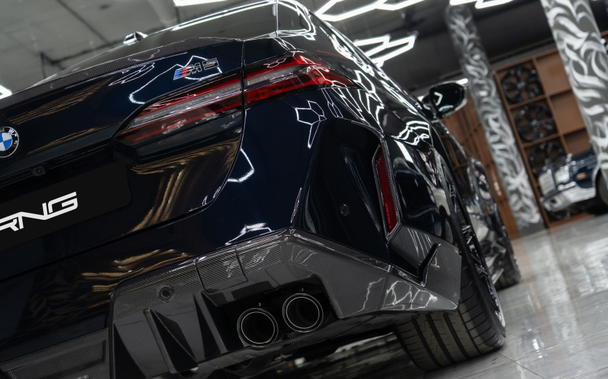 Специально создан для BMW M5 G90, диффузор идеально вписывается в форму заднего бампера и не требует доработок при установке. Это безупречное сочетание заводского стиля и индивидуального характера.