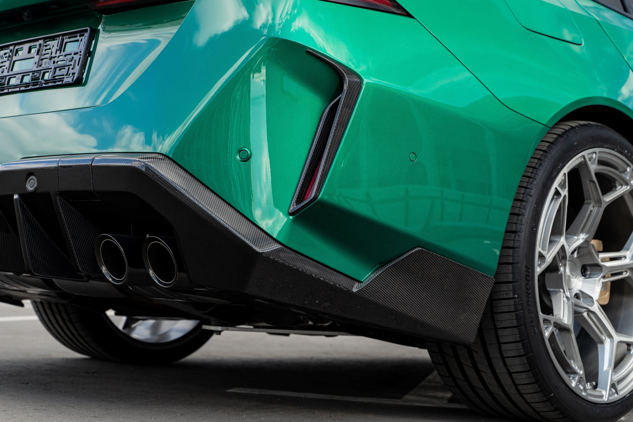 Диффузор придаёт задней части автомобиля объём, агрессию и структуру, подчёркивая линию выхлопной системы и усиливая общее восприятие мощности и точности.