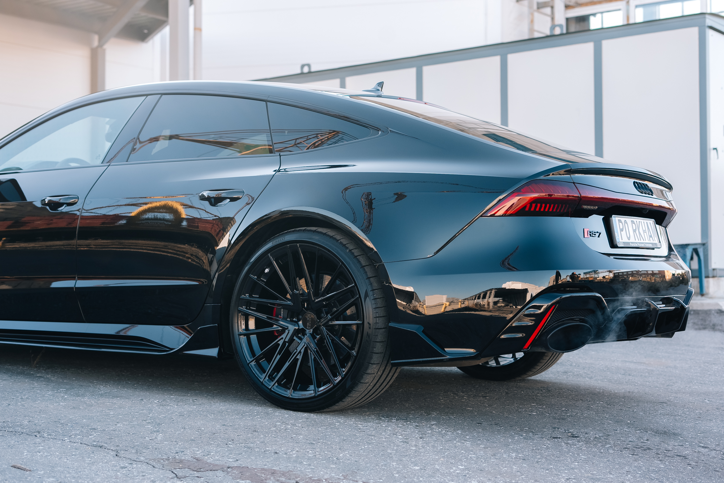 Задний диффузор для Audi RS7, выполненный в роскошном черном глянце, демонстрирует приверженность Renegade Design к элегантности и качеству. Глянцевая отделка не только дополняет существующие элементы дизайна автомобиля, но и добавляет нотку агрессивности и утонченности, обеспечивая целостный и высококлассный внешний вид.