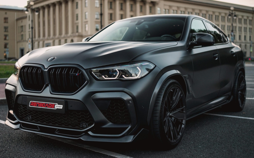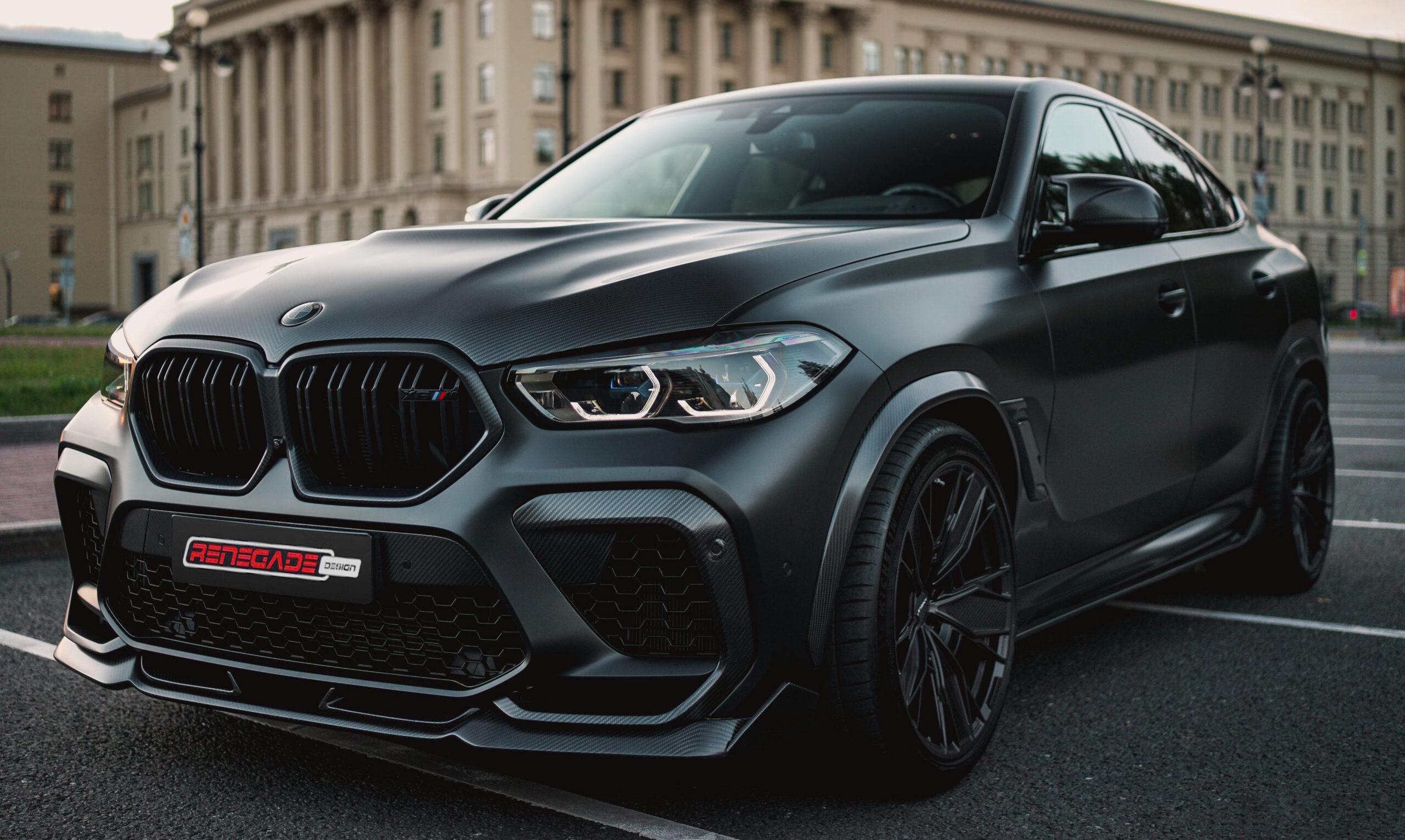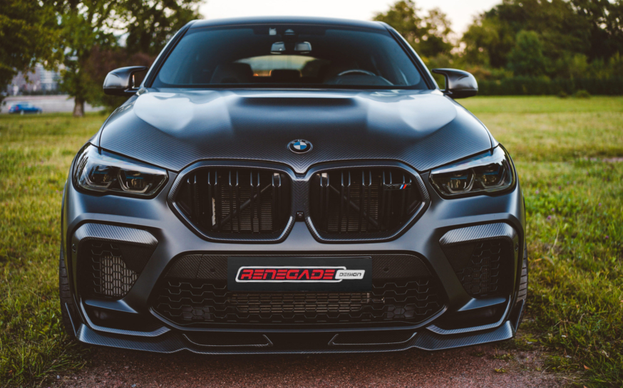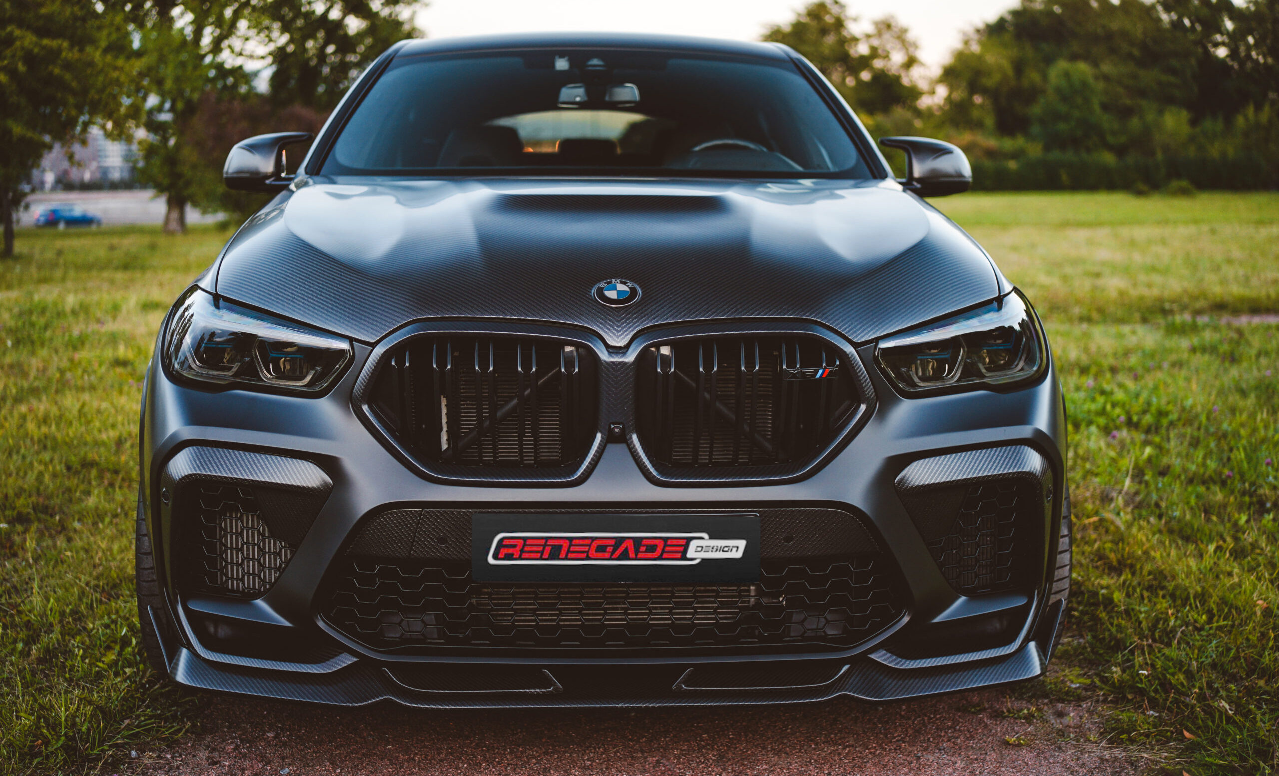 BMW X6M Competition F96 обладает узнаваемой агрессивной внешностью, но именно карбоновая окантовка решётки радиатора от Renegade Design придаёт передней части максимальную выразительность и завершённый стиль.