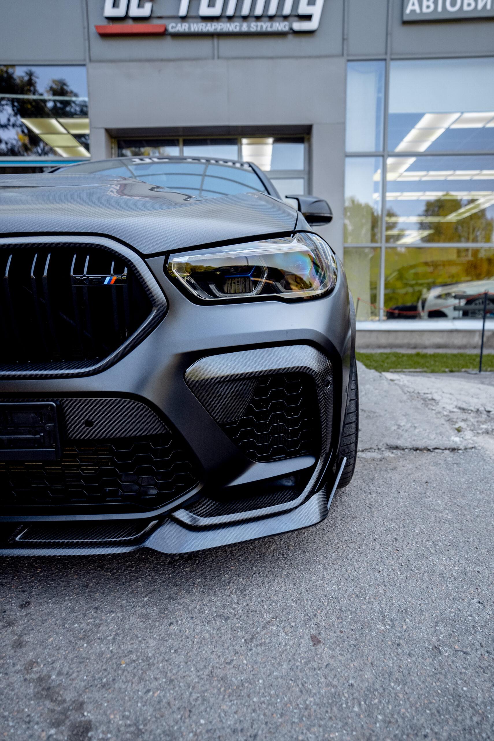 Комбинируйте карбоновую рамку с широкими арками, передним сплиттером, диффузором, накладками на зеркала и другими элементами, чтобы создать единый и мощный образ X6M F96.