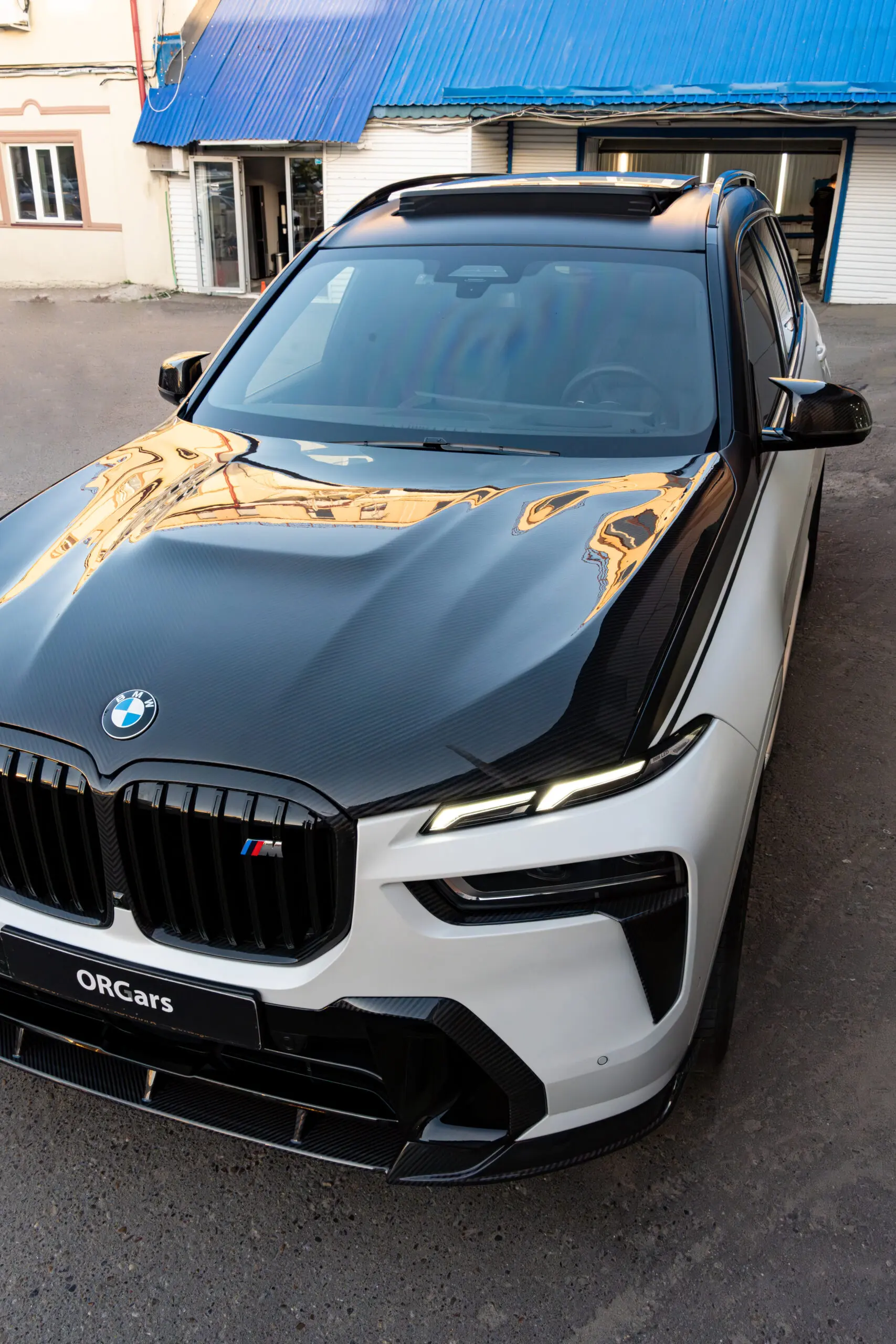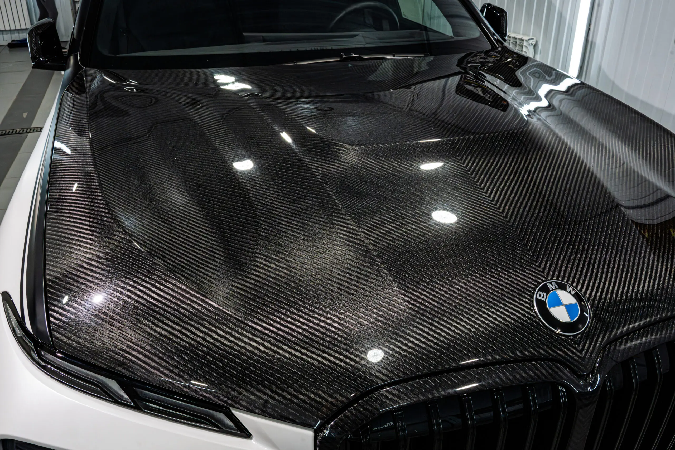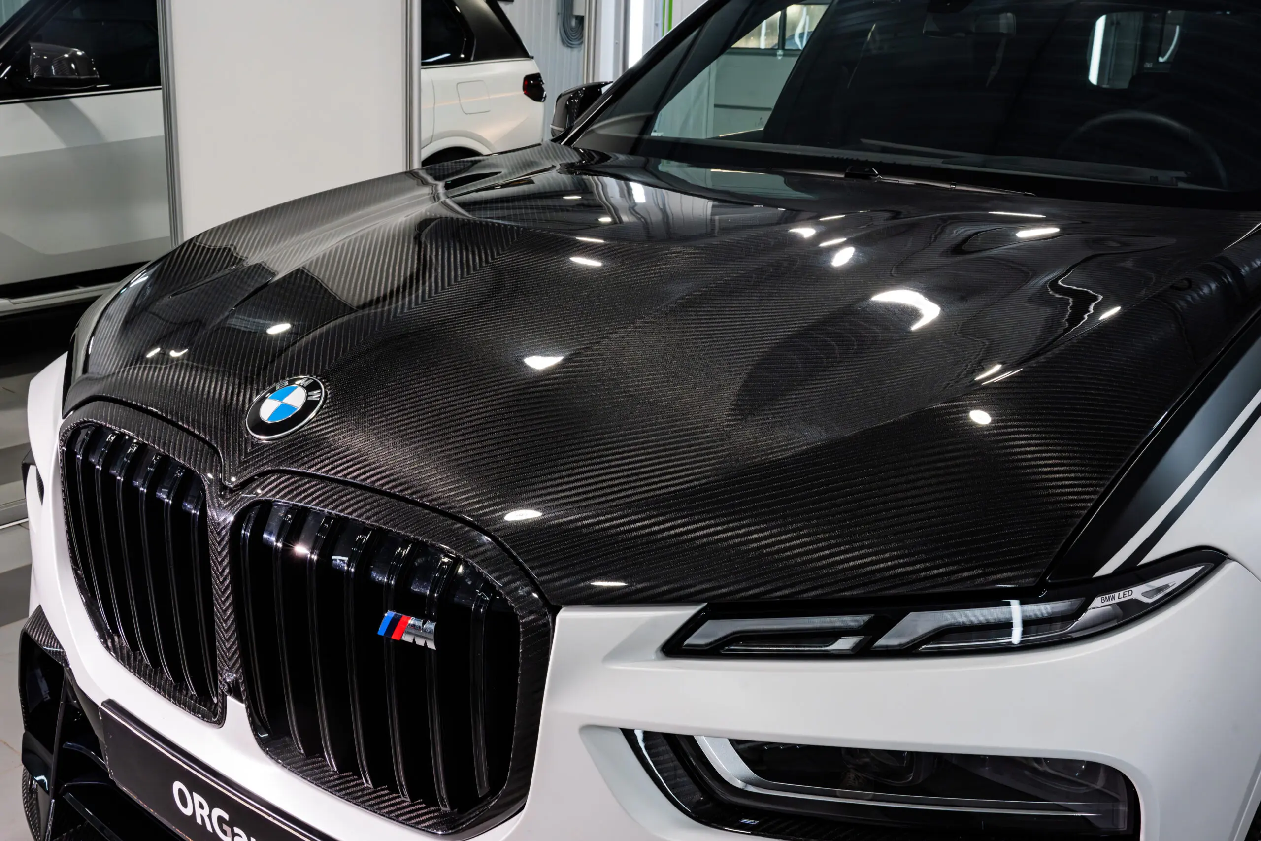 Карбоновый капот придаёт вашему BMW X7 LCI характер, лёгкость и выразительность, подчёркивая его принадлежность к сегменту премиум и high-performance.
