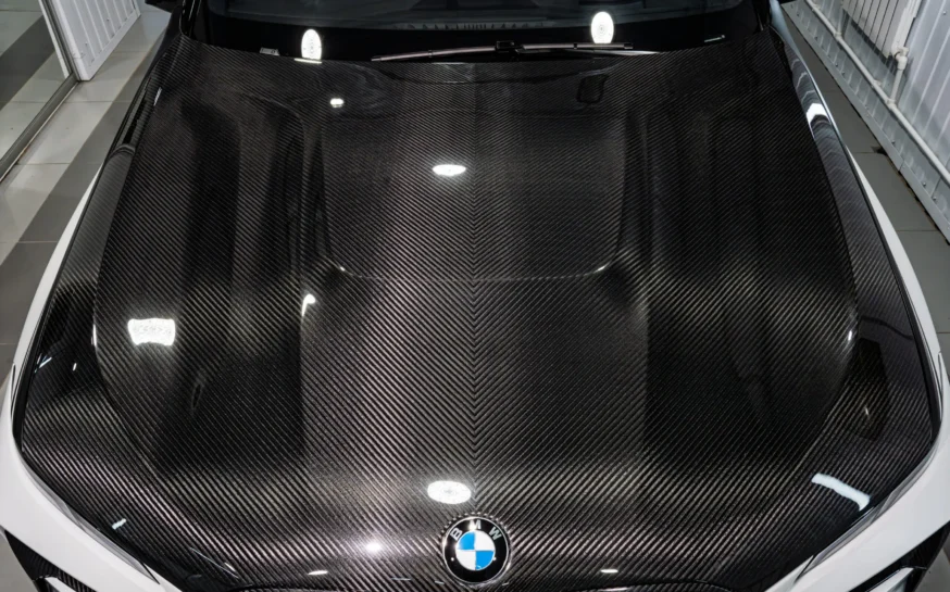 Изготовлен из премиального углеволокна, капот обеспечивает снижение веса, улучшая управляемость и общее ощущение от вождения. Глянцевая поверхность и текстура карбона подчёркивают эксклюзивность.