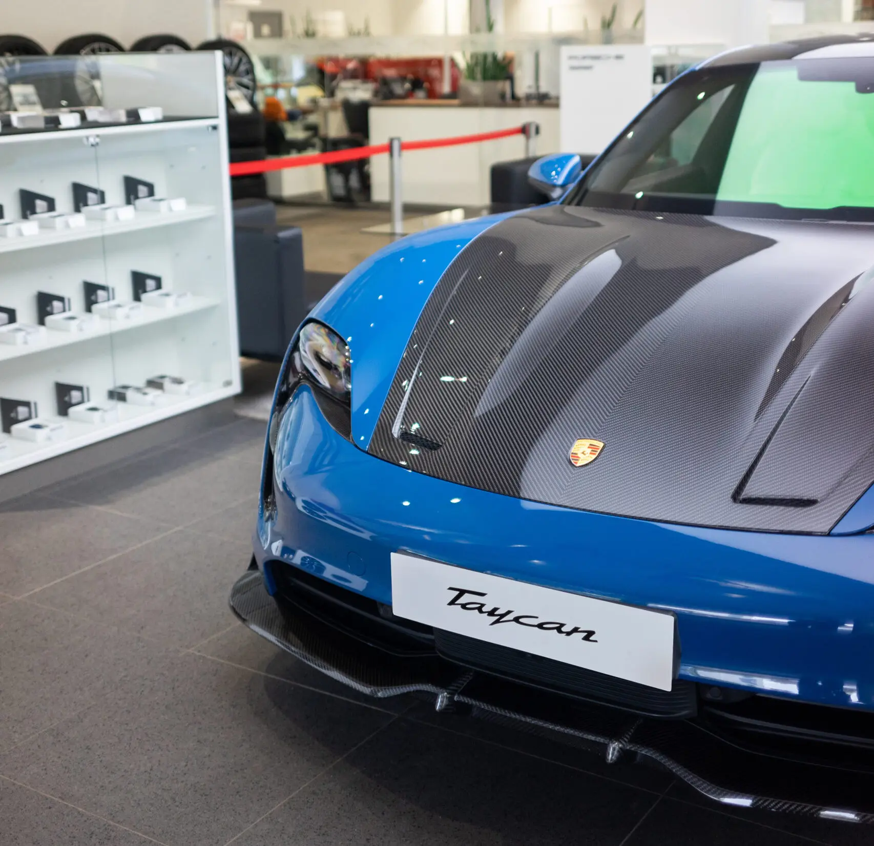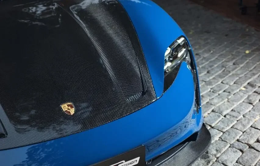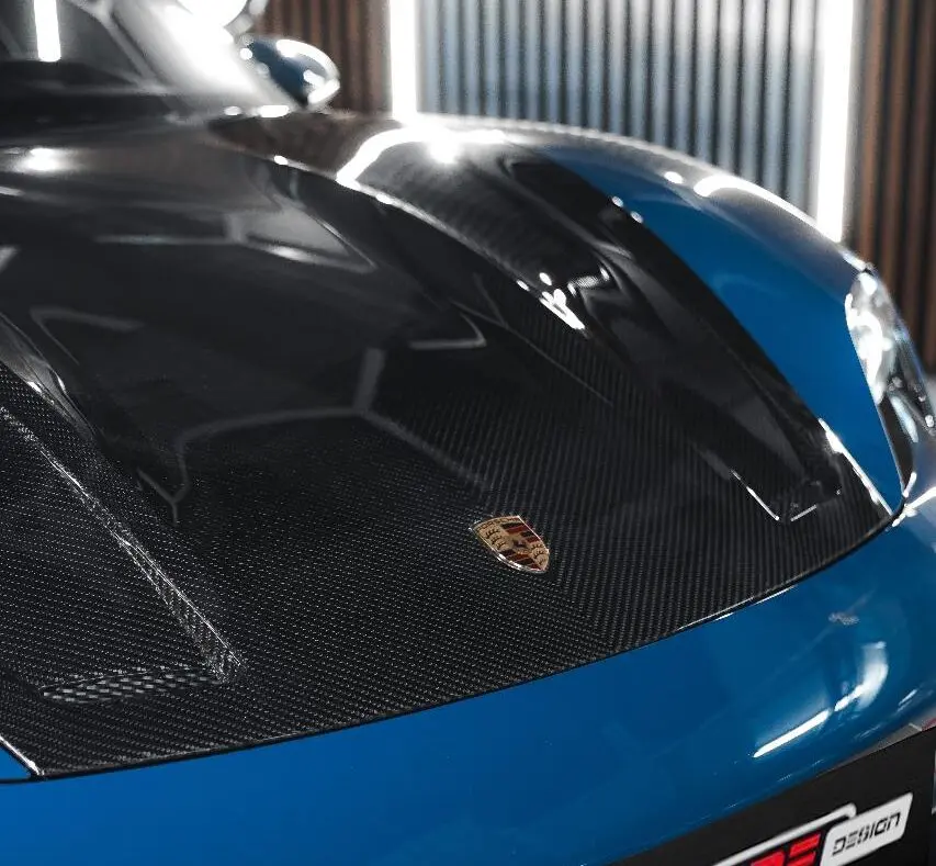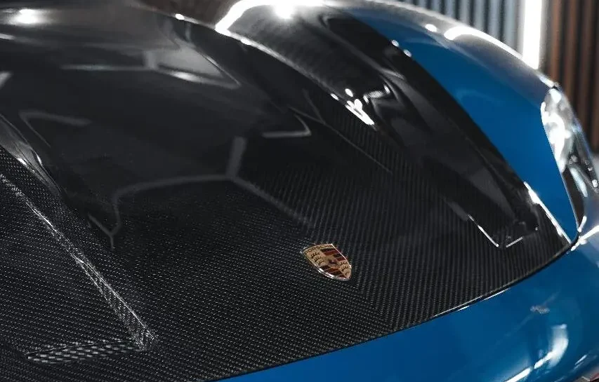 - Карбоновый капот придает автомобилю спортивный и современный вид. Углепластиковая структура капота подчеркивает стиль и эксклюзивность вашего Porsche.