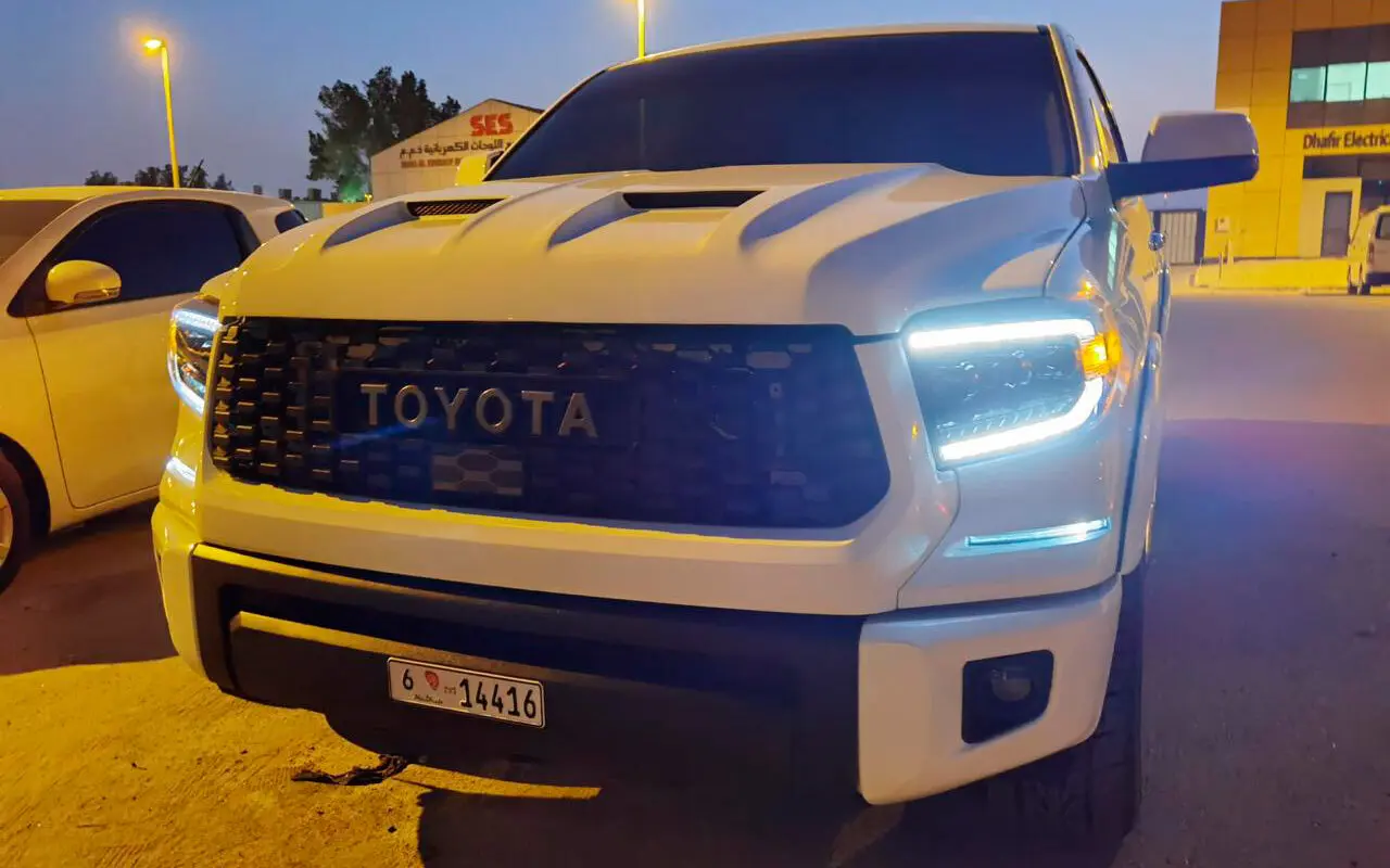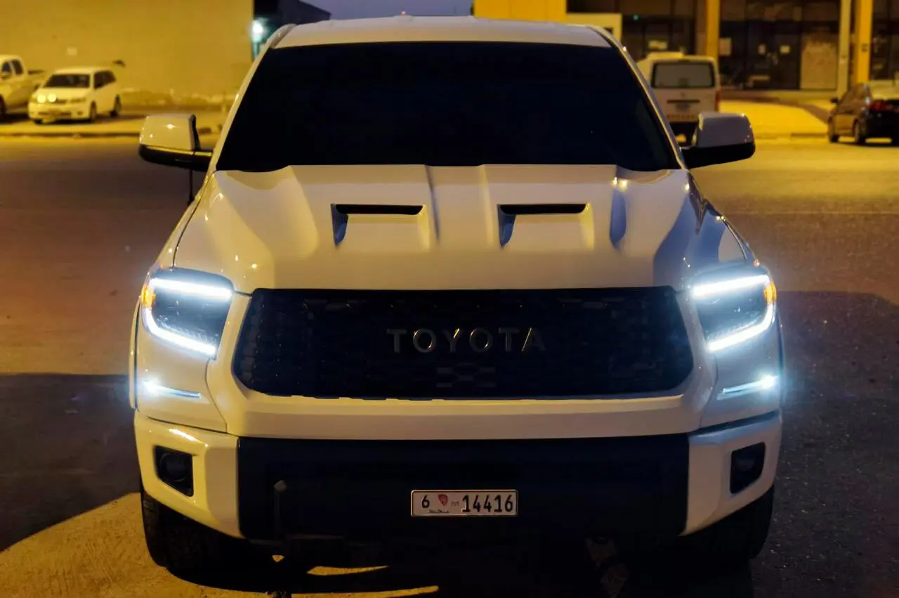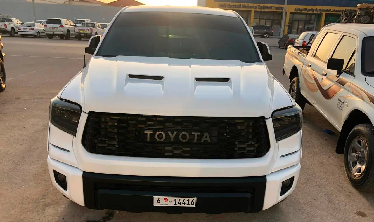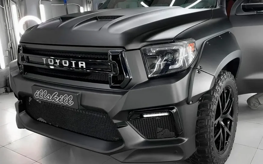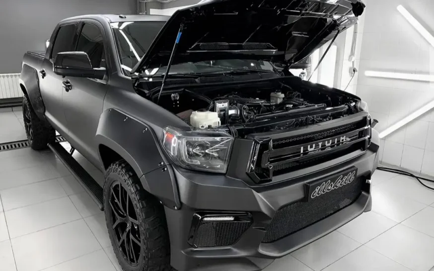 Модели Toyota Tundra уже 20 лет, а она по-прежнему на пике популярности. Полноразмерный пикап с четырехдверной кабиной и вместительной грузовой площадкой все чаще можно встретить в самых удаленных уголках мира. И понятно почему. Мощный, эстетичный и функциональный, он позволяет реализовывать как пассажирские, так и грузовые перевозки. В плюсах – скорость, выносливость, высокая проходимость. Современный кузов имеет обтекаемые линии с подчеркнутым рельефом внизу. Команда Renegade Design предлагает капот под покрас для Toyota Tundra, который добавит машине брутальности и стиля. На капоте появились угловатые продольные наплывы с двумя симметричными воздухозаборниками. Благодаря им передняя часть авто приобретает весьма агрессивный вид. Приятный бонус – дополнительные источники охлаждения для двигателя. Капот изготавливается из базальта и поставляется с гарантией на 5 лет. Монтаж осуществляется на заводские крепления.