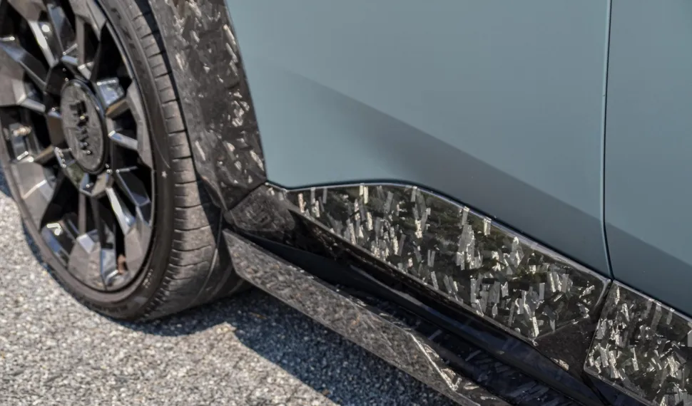 Карбоновые накладки моментально меняют восприятие боковой части XM — гладкая текстура, выразительное карбоновое плетение и эффектный блеск придают автомобилю более технологичный и спортивный облик.