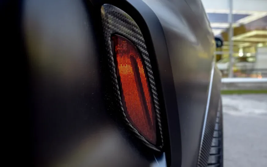 Вставки располагаются в нижней зоне заднего бампера, подчёркивая его ширину и горизонтальные линии. Они создают многослойный эффект, особенно в сочетании с диффузором и выхлопной системой, усиливая общее восприятие задней части автомобиля.