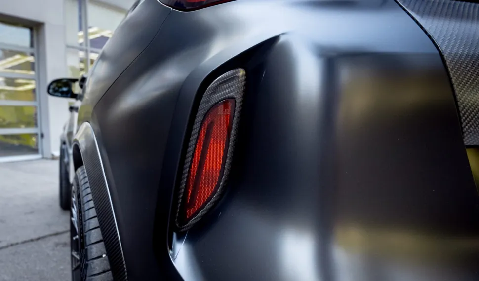 Вставки идеально дополняют карбоновый диффузор, спойлер заднего стекла, пороги, накладки и другие элементы, формируя единый и мощный стиль задней части.