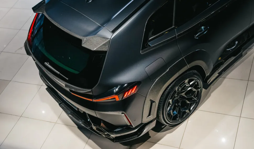 Расположенный по центру на крышке багажника, спойлер добавляет четкости и динамики силуэту XM. Глянцевая карбоновая структура и точные линии делают заднюю часть более выразительной и придают автомобилю спортивный акцент.