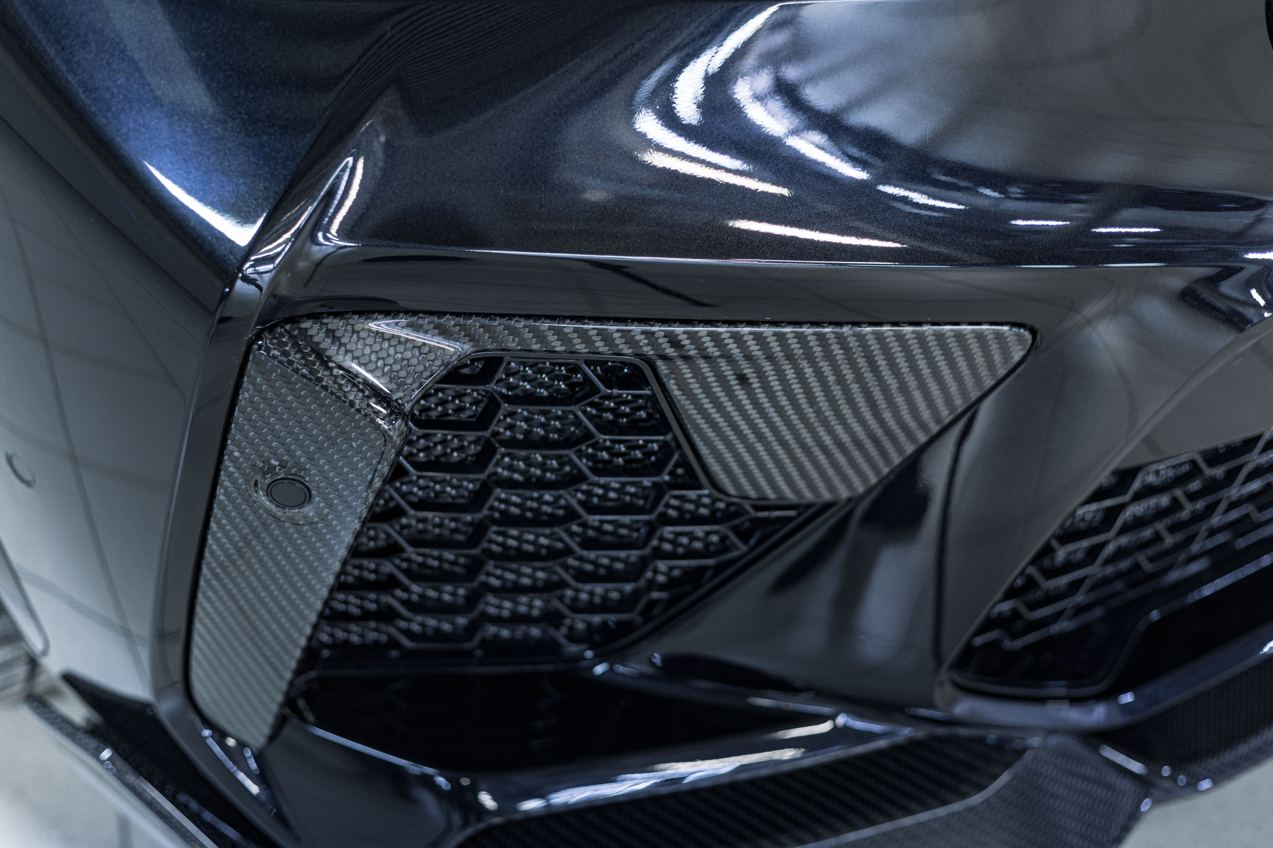Black Sapphire — один из тех оттенков, которые читаются по-разному в зависимости от света: где-то глубокий чёрный, где-то с холодными переливами и «стеклянной» глубиной. И именно поэтому карбон 6K здесь работает как идеальный контраст: он не спорит с цветом, он подчеркивает его дорогую фактуру, добавляет визуальной сложности и делает автомобиль «многослойным».