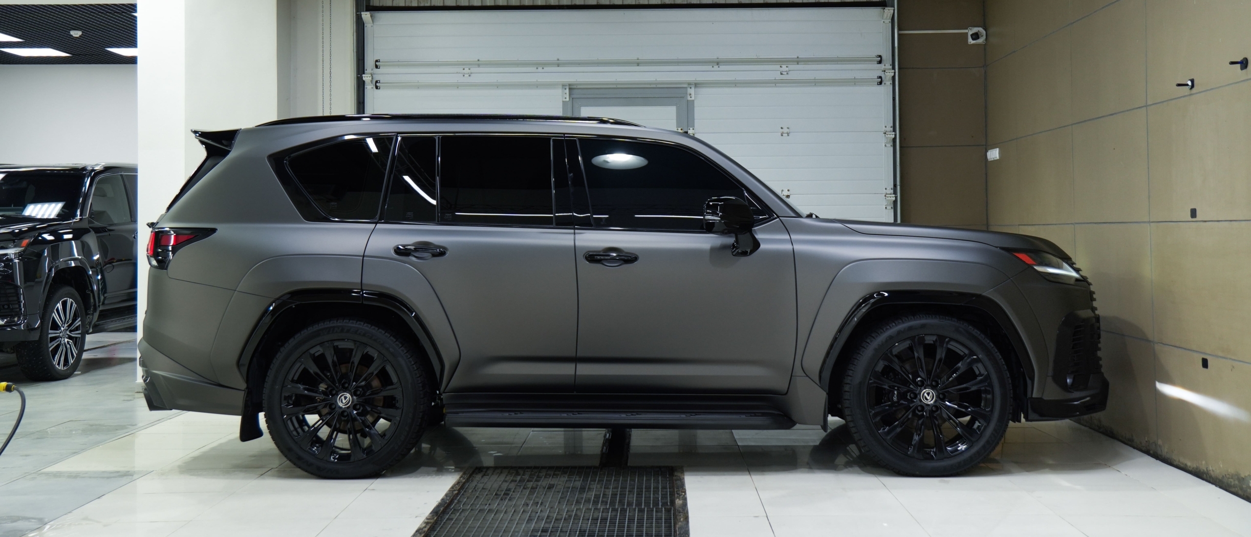 В этот раз мы реализовали проект на Lexus LX600: все детали — в черном глянце, расширители — в матовой серой пленке в тон автомобиля, плюс акцентные элементы арок — снова черный глянец. В результате получился контрастный, дорогой и очень “летний” образ — тот самый, который не кричит, а доминирует.