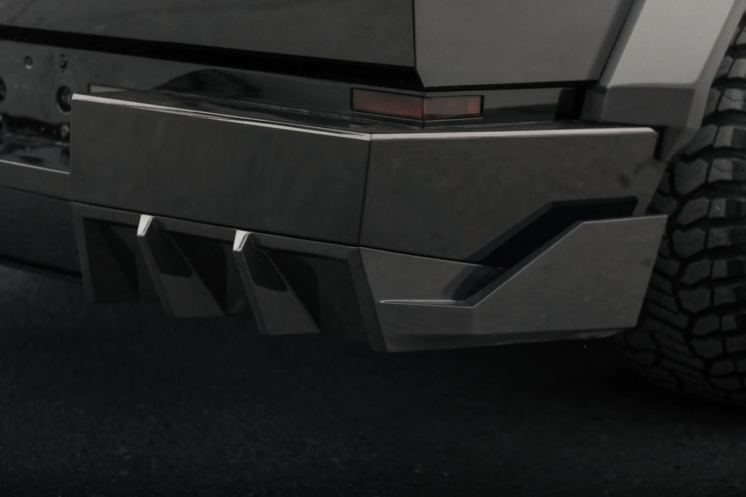 В основе проекта — наш карбоновый комплект для Tesla Cybertruck. Базовый состав — то, что мгновенно меняет силуэт и “посадку” автомобиля: