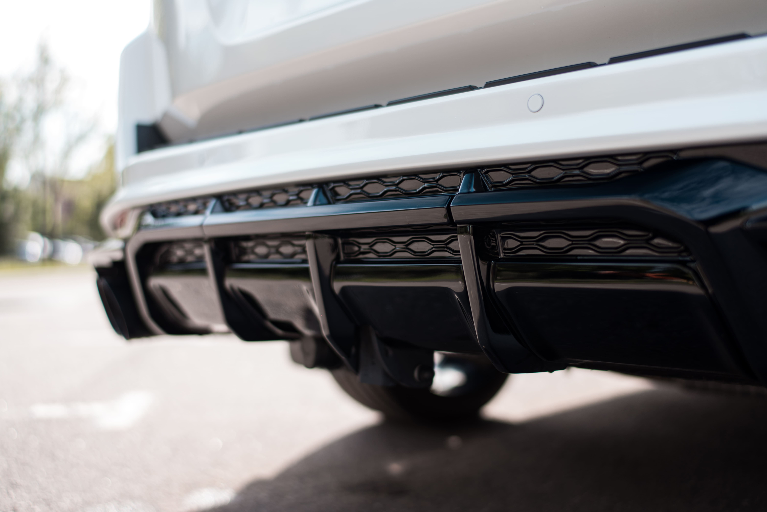 Черный глянец работает здесь как дорогой штрих: подчеркивает линии, добавляет глубину и делает бамперы визуально более собранными и «премиальными».