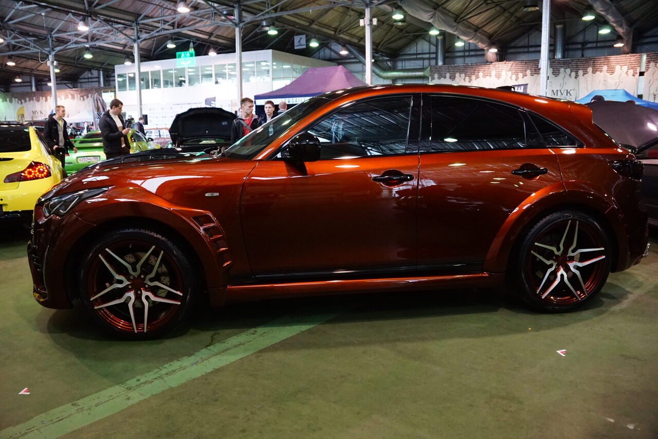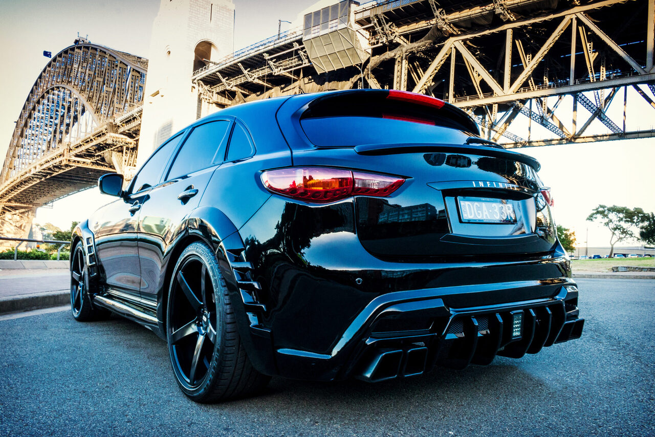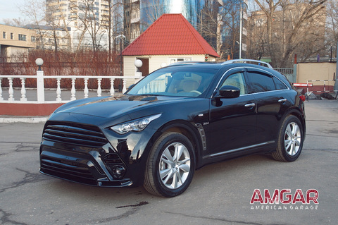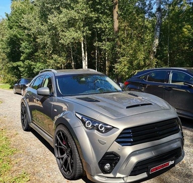 Установка нового обвеса для элитного кроссовера концерна Nissan – это не просто инструмент модернизации его внешнего вида, но еще и составляющая в контексте улучшения аэродинамики, управляемости, защиты элементов кузова. С тюнингом Infiniti QX70 обретает черты спортивного автомобиля. Его характер победителя прослеживается в каждой линии и изгибе. Вид модели становится максимально злым и целеустремленным.