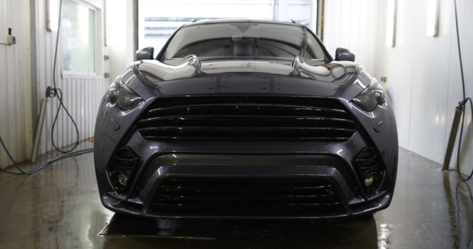 Для начала мы подготовим элементы обвеса Infiniti QX70. Это наша дизайнерская продукция, изготавливаемая с использованием 3D-моделирования. Далее вы сможете установить компоненты в нашем сервисе в Москве или по регионам и даже за границей.