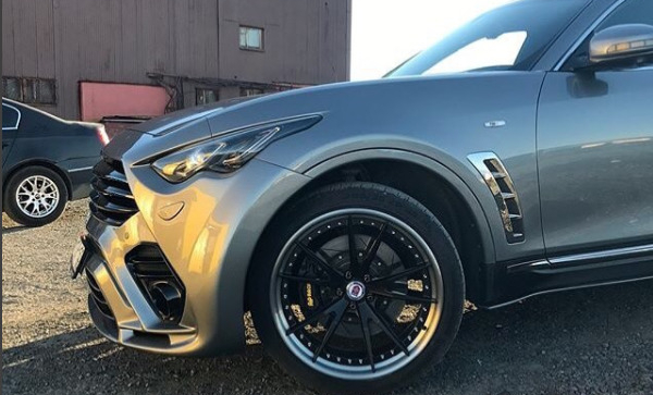 Чтобы добиться максимального эффекта от тюнинга Инфинити QX70, устанавливайте эти компоненты комплексно. Конфигуратор поможет сориентироваться с выбором и стоимостью прямо на странице сайта. Дополнительно также можно установить увеличенные монолитные кованые диски в размере от 20 до 23 дюймов. Вынесенные в арках колеса смотрятся более эффектно и солидно.