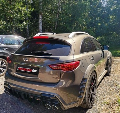 Мы предлагаем заказать тюнинг-комплект и изменить дизайн Infiniti QX70 в соответствии с нормами и стандартами, поэтому с эксплуатацией и регистрацией тюнингованного транспортного средства не возникнет проблем. При этом вы получите фирменный обвес по цене без комиссий посредников, так как мы непосредственно занимаемся его изготовлением и установкой. Наши специалисты в любое время готовы ответить на вопросы и предложить большой выбор различных вариантов тюнинг-обвеса для вашего автомобиля. Свяжитесь с нами для получения консультации по товарам, представленным в каталоге, и оформления заказа.