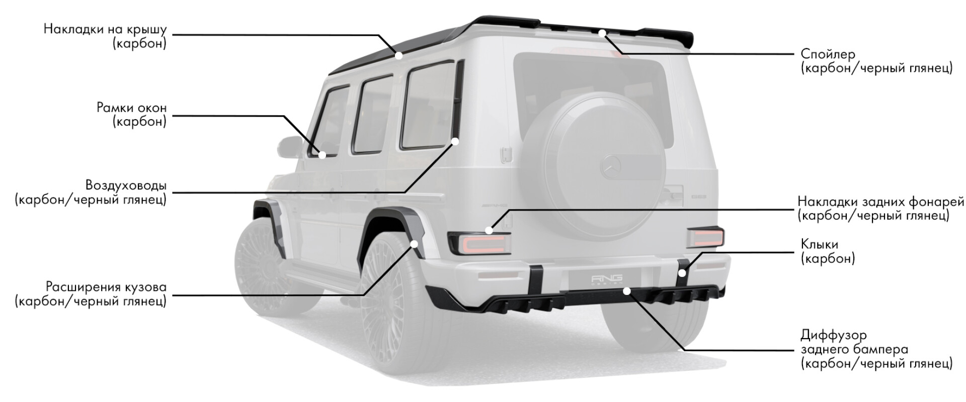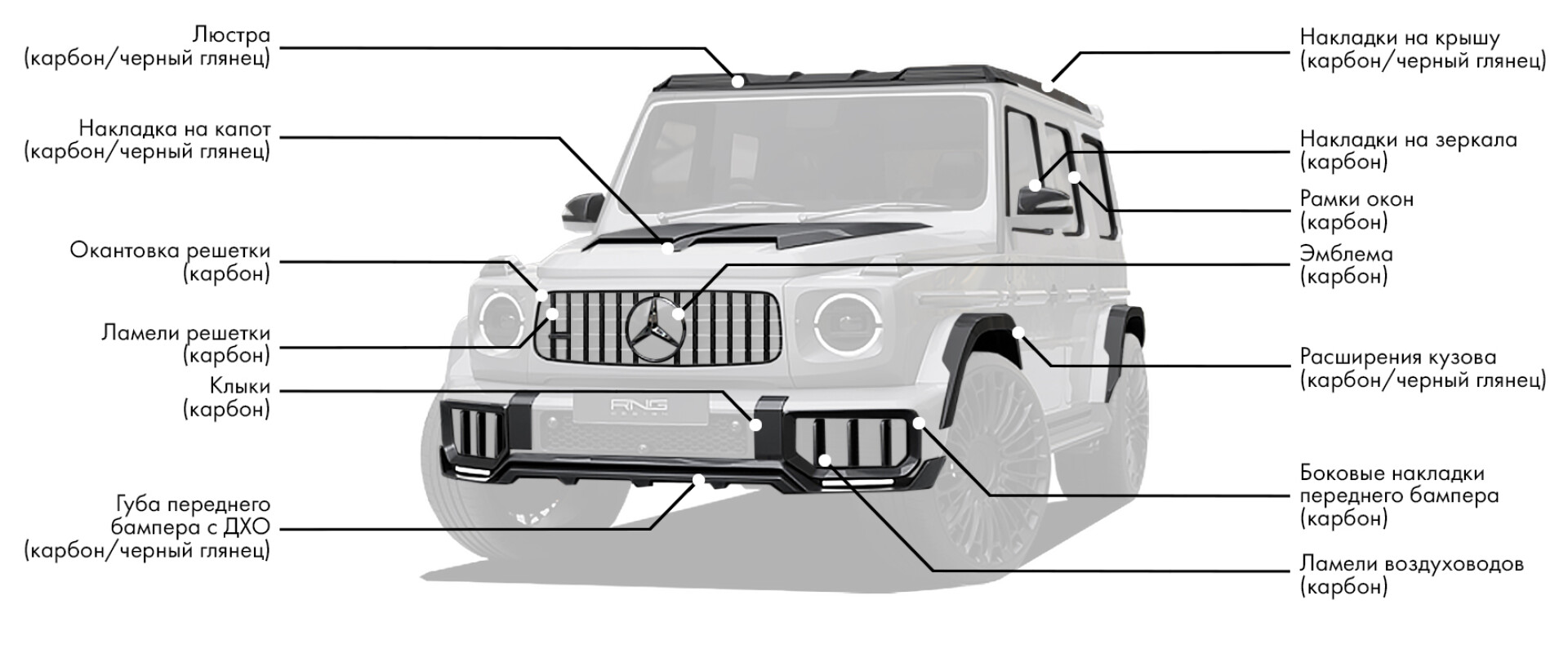 Выбор обвеса от Renegade Design для вашего Mercedes-Benz G63 2025 означает приверженность непревзойденному стилю, инновациям и производительности. Эта модернизация не только повышает эстетическую привлекательность вашего G63, но и улучшает его аэродинамические характеристики, устанавливая новый стандарт кастомизации роскошных внедорожников. Улучшите свои впечатления от вождения и выделитесь с автомобилем, который отражает мощь и элегантность. Модернизируйте свой G63 с помощью Renegade Design и почувствуйте высшую степень роскоши и производительности.