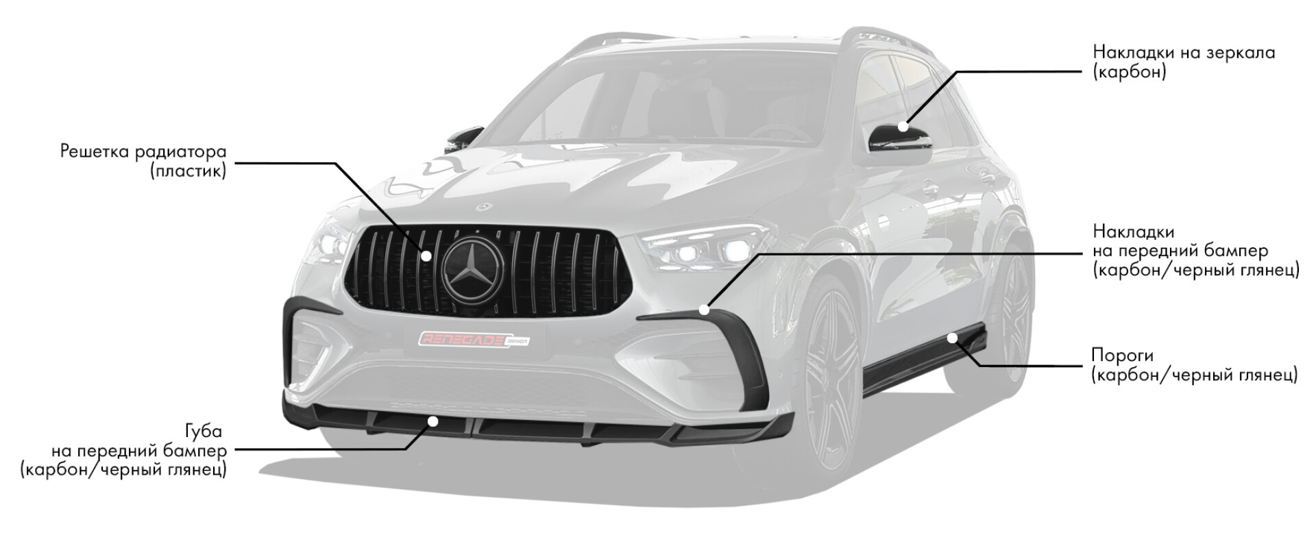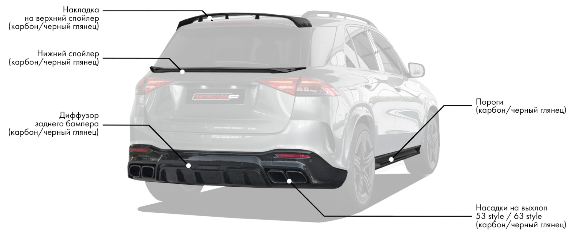 Представляем вашему вниманию эксклюзивный обвес для Mercedes-Benz GLE 2024 от Renegade Design. Этот аксессуар премиум-класса тщательно проработан, чтобы улучшить как визуальную привлекательность, так и аэродинамическую эффективность вашего GLE, устанавливая новый стандарт роскоши и производительности.