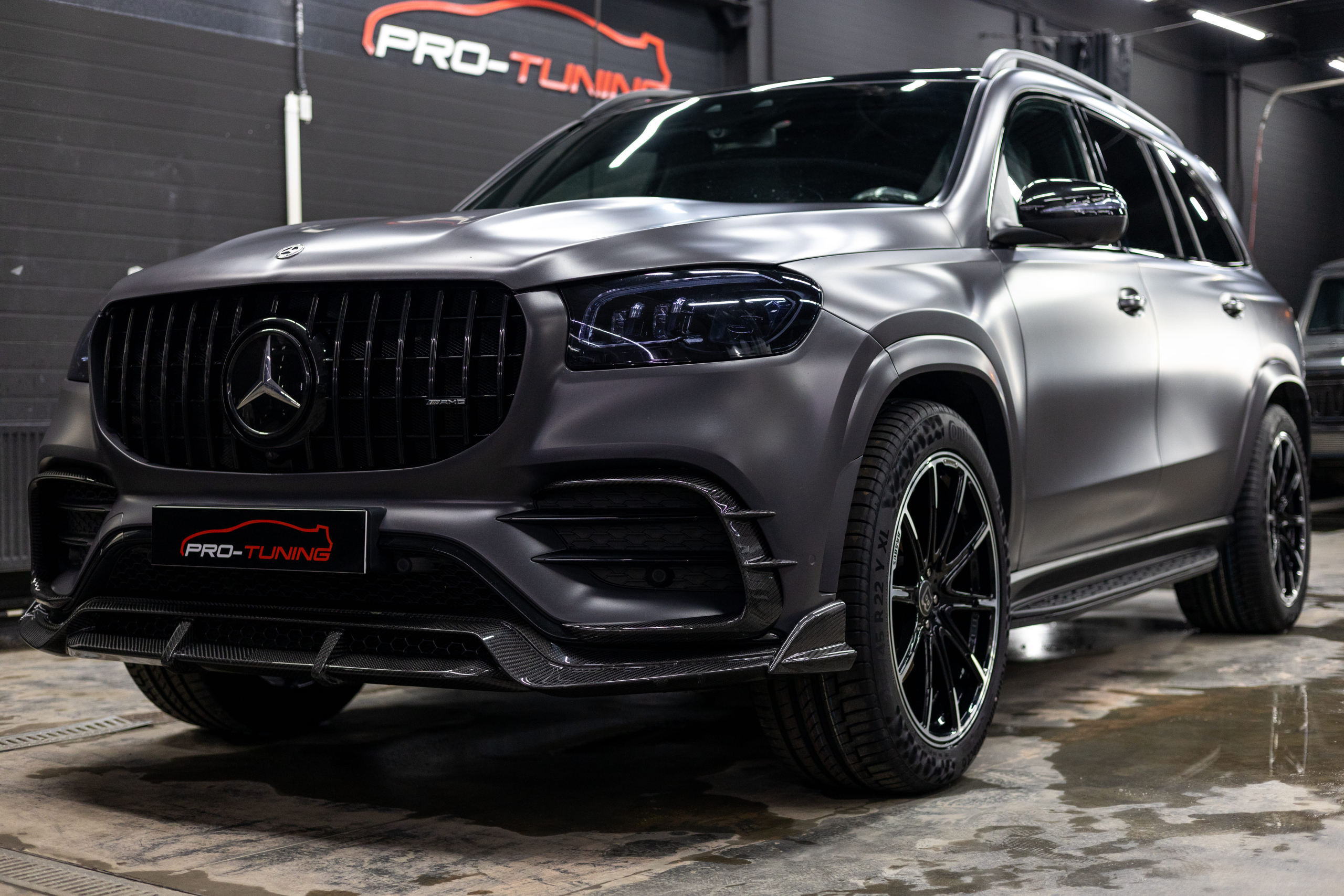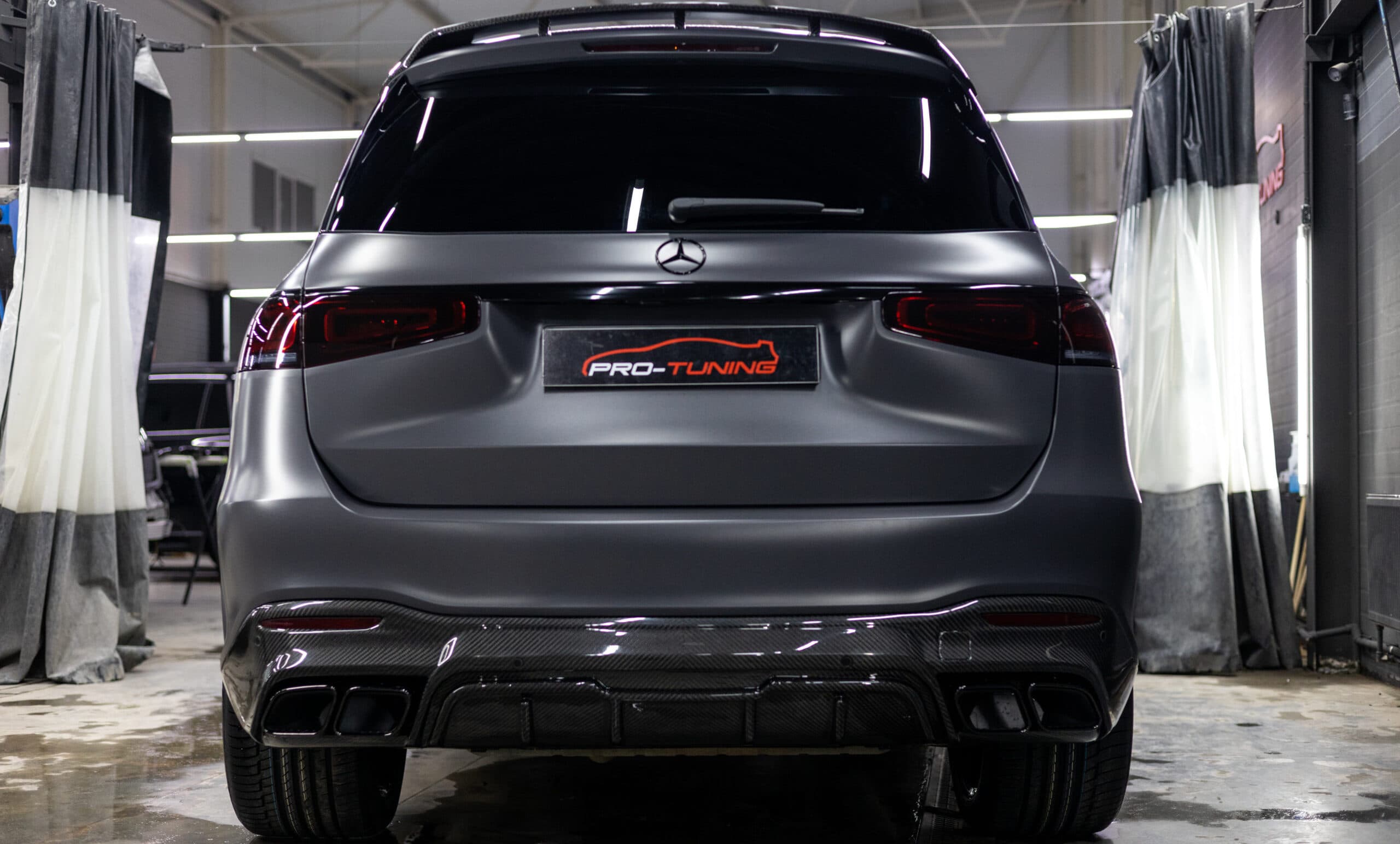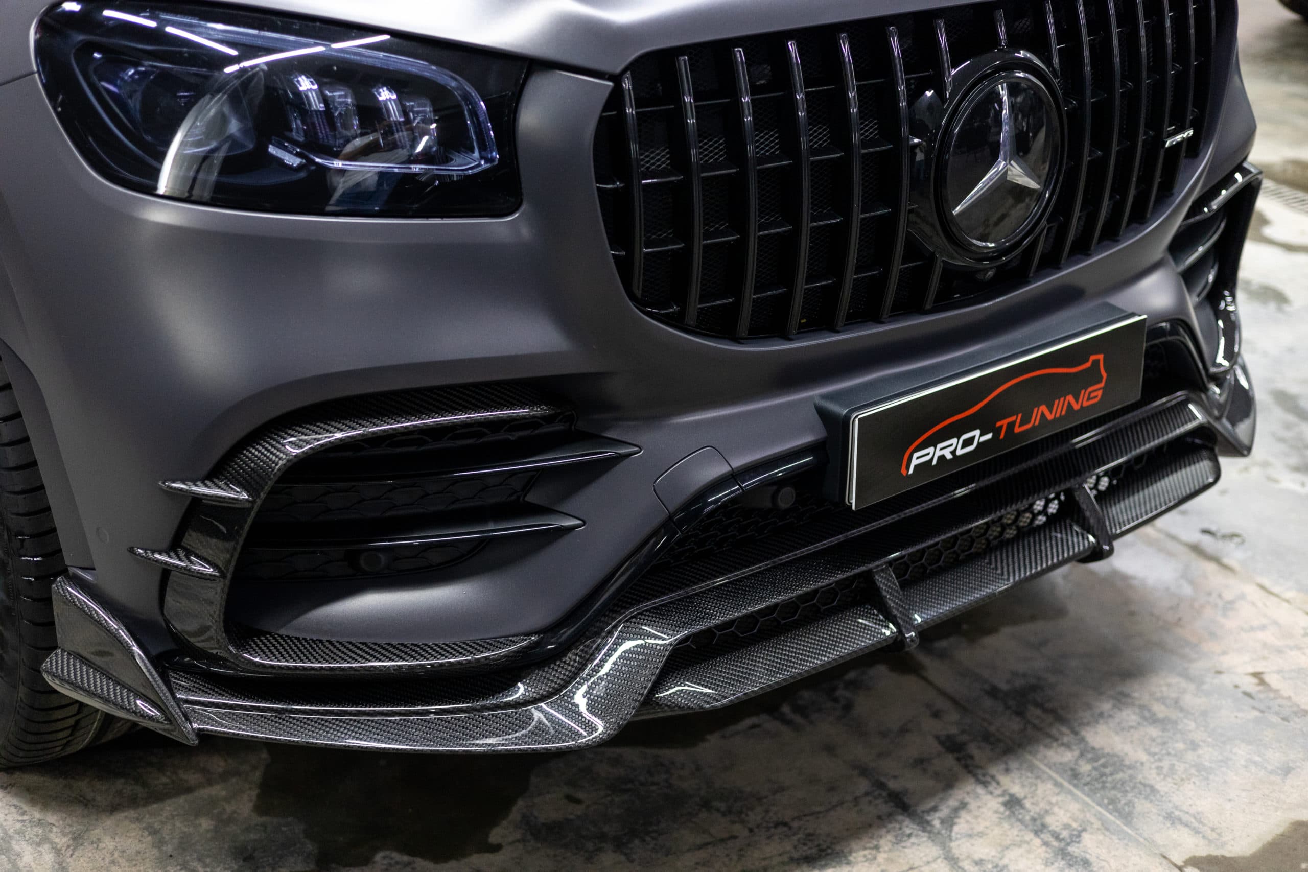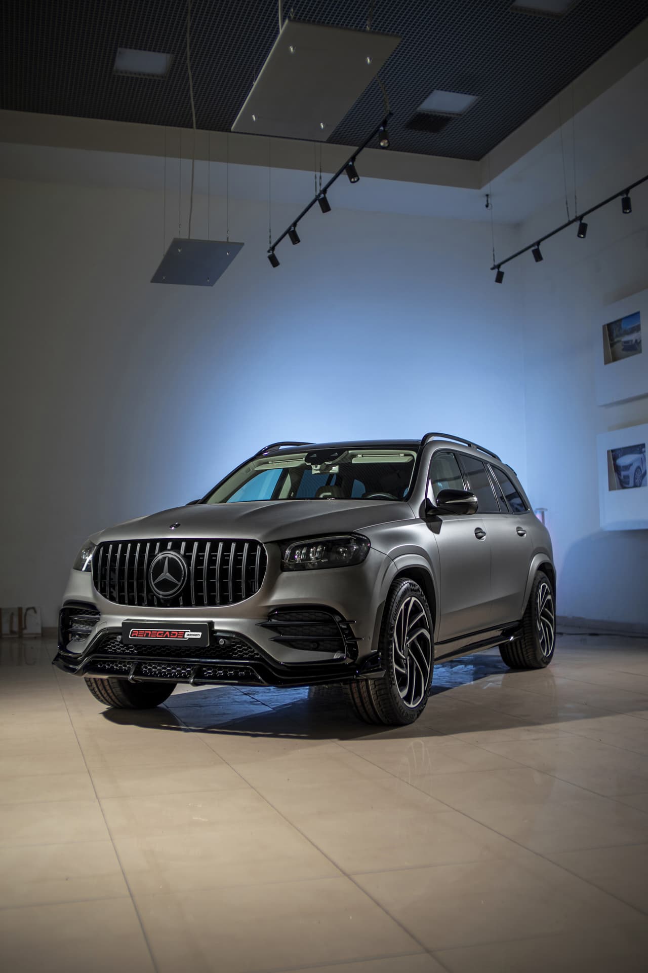 Агрессивный кузовной тюнинг Мерседеса GLS 167 станет объектом вашей гордости. Автомобиль еще ярче выделится из массы, станет эталонным в контексте баланса динамики, стиля, крутого внешнего вида. Выразительные линии кузова, увеличенные колесные диски, строгий, серьезный взгляд подчеркнут спрятанный под капотом потенциал.