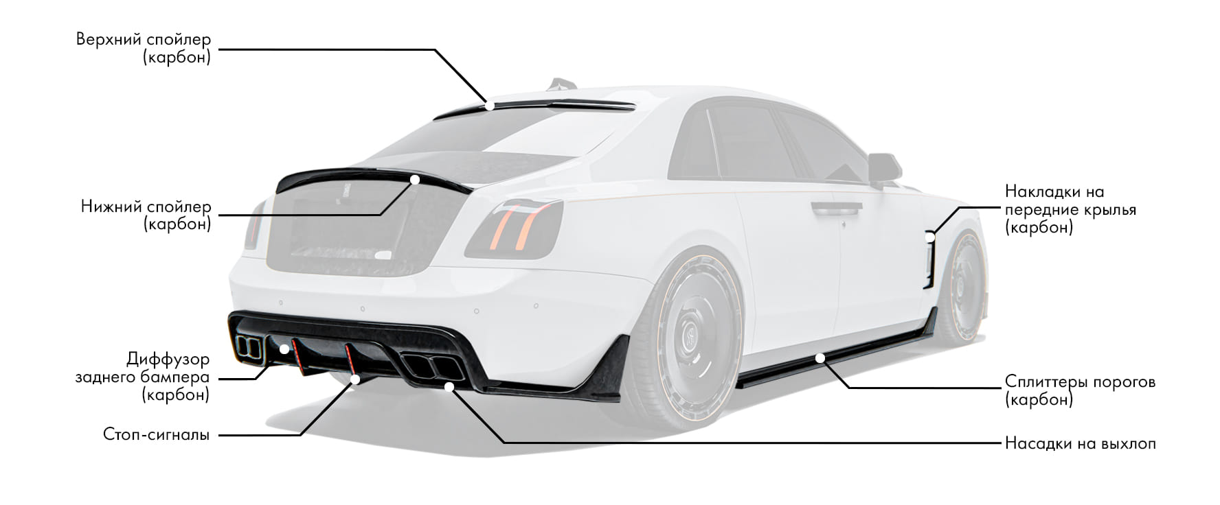 Обвес спроектирован специально под кузов Ghost Series II 2025 — никаких зазоров или модификаций