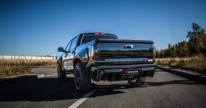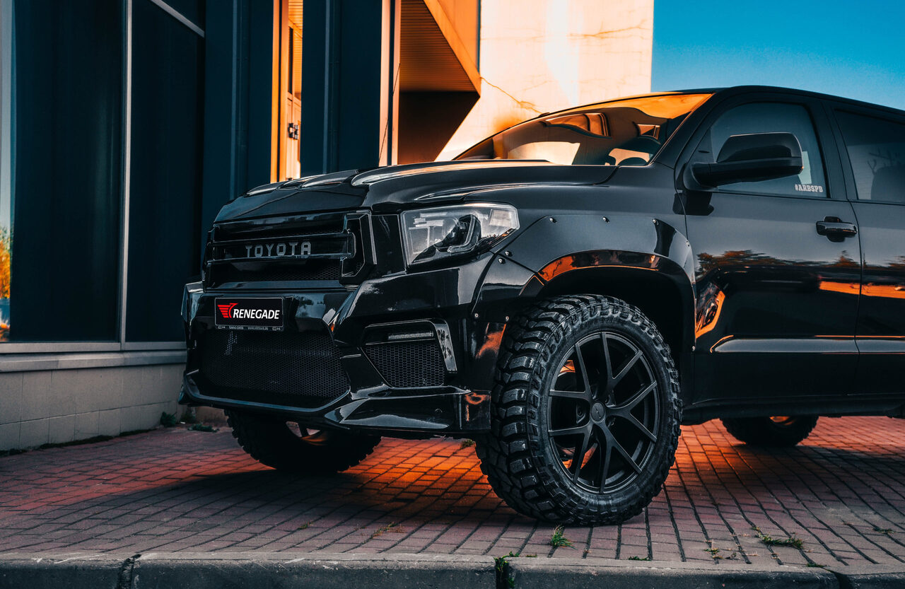 Без сомнения, Toyota Tundra — массивный, мощный и с отличными характеристиками. Единственный минус — довольно скромный и заурядный дизайн. Но это легко исправить благодаря установке обвеса от компании Renegade Design.