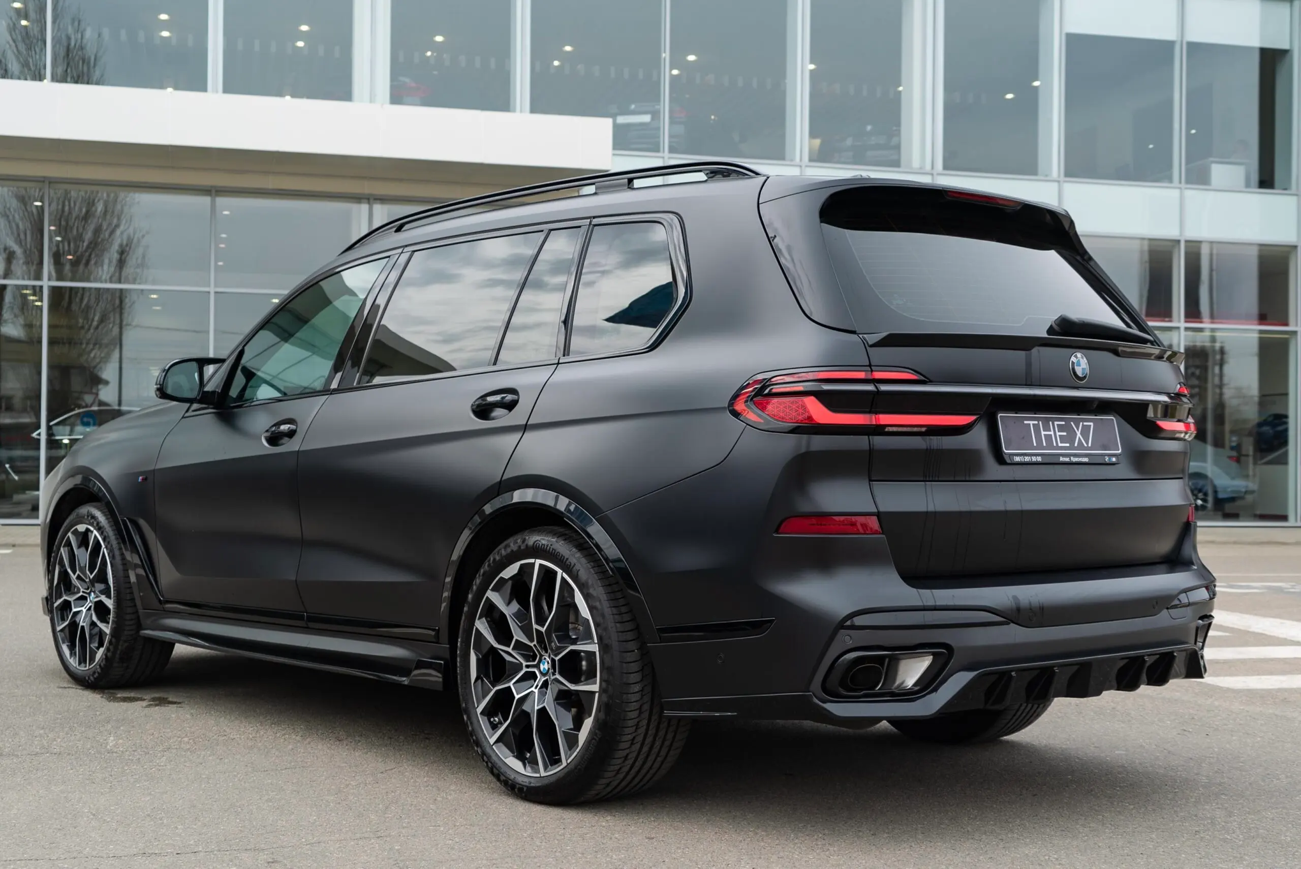 Даже официальные дилеры BMW начинают понимать, что новые автомобили с нашими комплектами обвеса выглядят потрясающе и гораздо лучше, чем в базовой комплектации. Поэтому, чтобы увеличить продажи нового BMW X7 LCI, они заказали наш новый обвес в черном глянце и установили его на X7 m60i в этом красивом матово-черном цвете.