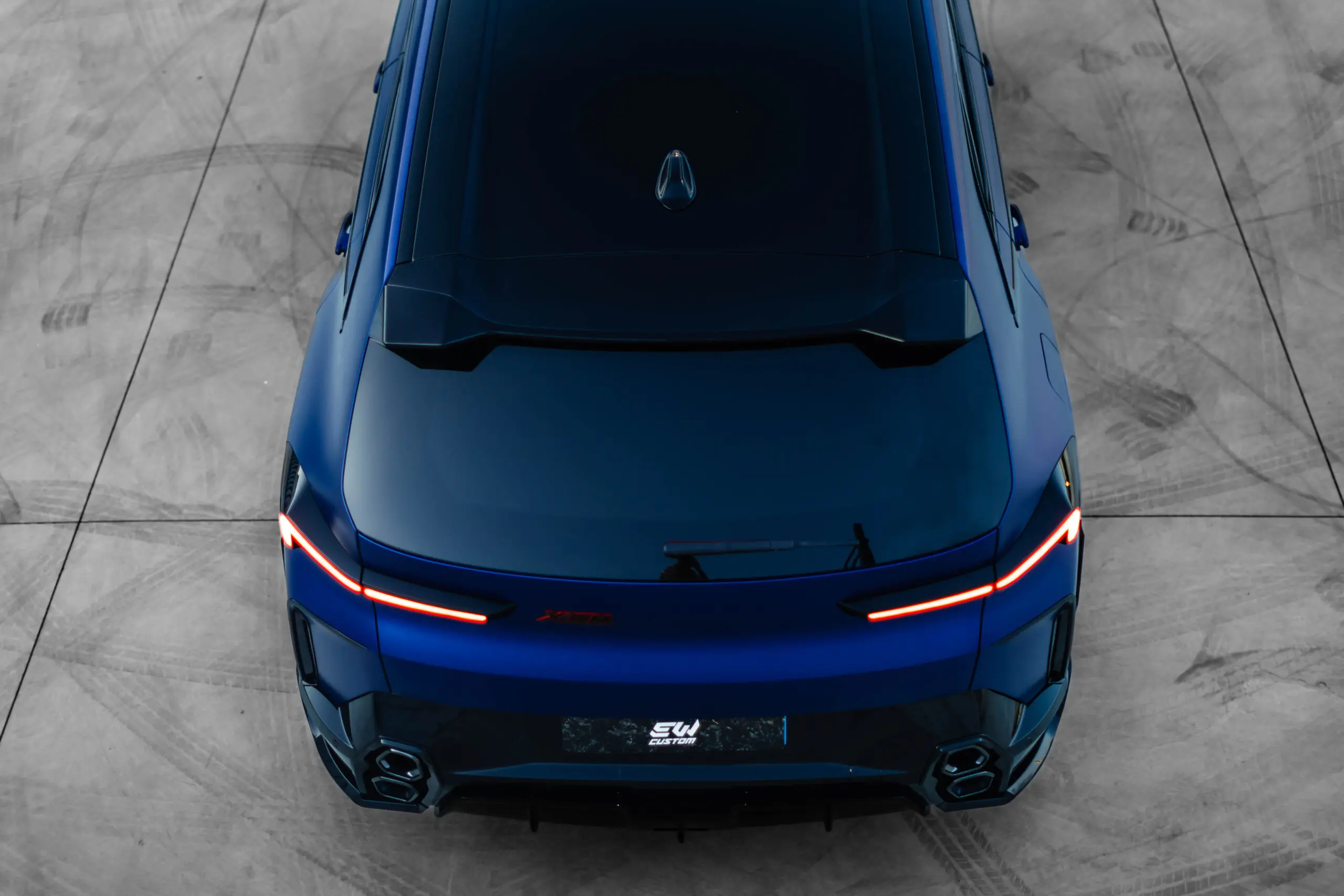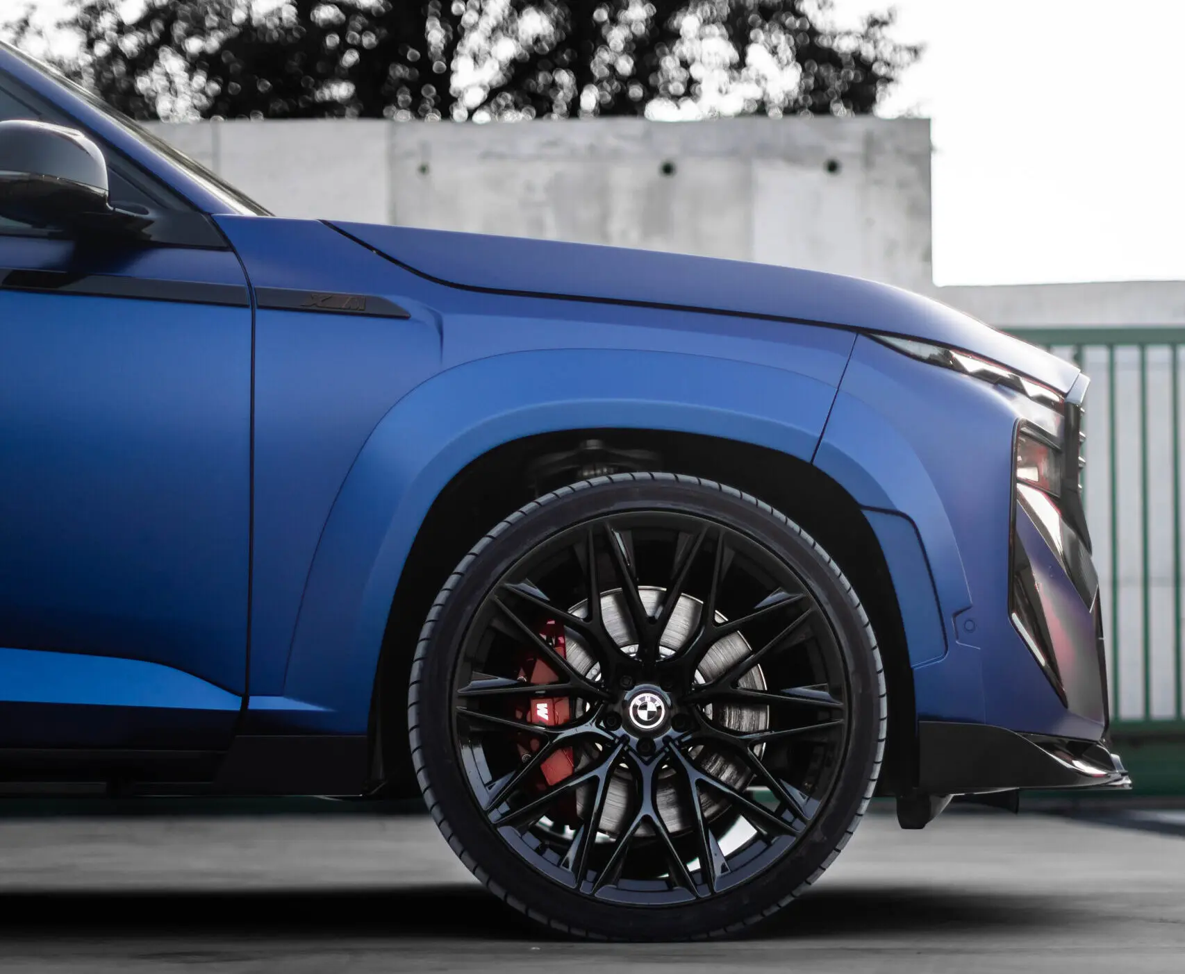Взгляните на этот прекрасный XM, обтянутый матовым синим винилом и полиуретаном, установленный наш обвес в черном глянце + кованые диски Renegade 23» с конкейвом, который идеально подходит к расширению кузова.