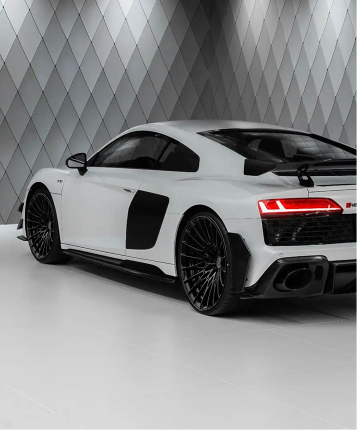 Повышение качества Audi R8 GT Известный своей непревзойденной производительностью и культовым дизайном, R8 GT заслуживает колес, которые отражают его элитный статус. Наши кованые диски не только улучшают управляемость и устойчивость автомобиля, но и визуально дополняют его внешний вид. Дизайн наших колес тщательно проработан, чтобы вписаться в аэродинамические линии R8 GT, усиливая его присутствие в качестве легенды суперкаров.