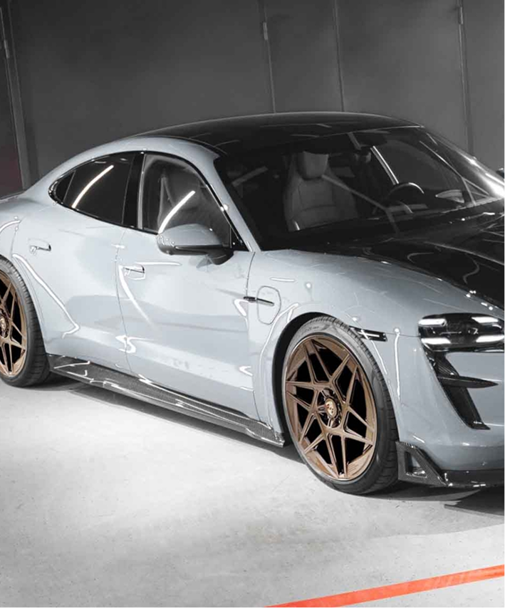 Усиление электрической сущности Taycan Taycan является свидетельством приверженности Porsche к электрическим инновациям и захватывающим характеристикам. Наши кованые диски призваны дополнить эти качества, улучшая управляемость и устойчивость автомобиля и одновременно добавляя визуально захватывающий элемент в его внешний вид. Дизайн наших колес тщательно продуман, чтобы органично вписаться в аэродинамический профиль Taycan, укрепляя его статус новаторского спортивного электромобиля.